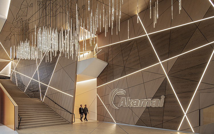 For Akamai Technologies’ global headquarters at 145 Broadway in Cambridge, the design team sought a lighting solution that could visually express the company’s mission of global connectedness. The answer came through Sculpt, Axis Lighting’s ultra-slim 1.5" linear system, which became the backbone of a striking architectural concept known as the AkaMile.
