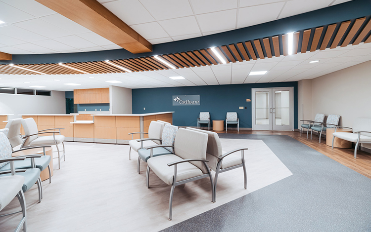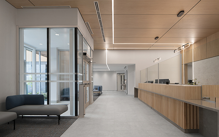Cooledge SkySpan luminous ceilings deliver uniform, diffuse illumination that create the impression of large skylights in the lobby area of this newly renovated headquarters. Tunable white functionality can be used to change the mood of the space or follow the rhythms of the day.