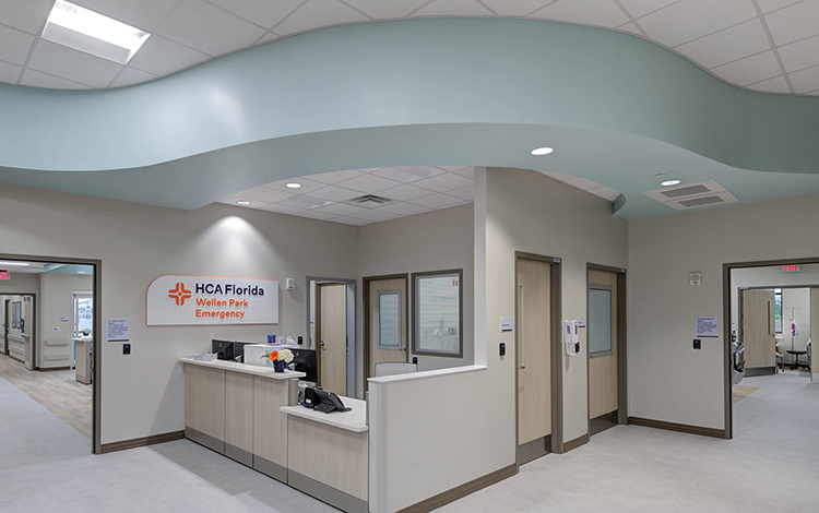 NRC Health Cooledge SkySpan luminous ceilings deliver uniform, diffuse illumination that create the impression of large skylights in the lobby area of this newly renovated headquarters. Tunable white functionality can be used to change the mood of the space or follow the rhythms of the day. ARCHITECT: Sinclair Hille Architects LUMINOUS SURFACE AREA SkySpan Flush Mount 1 @ 31.8’ x 12.0’ (9.7m x 3.7m) 1 @ 32.3’ x 11.5’ (9.9m x 3.5m) COLOR TEMPERATURE: 2700-5700K CRI ≥90 Photography Credits: Bill Hess (William Hess Photography)